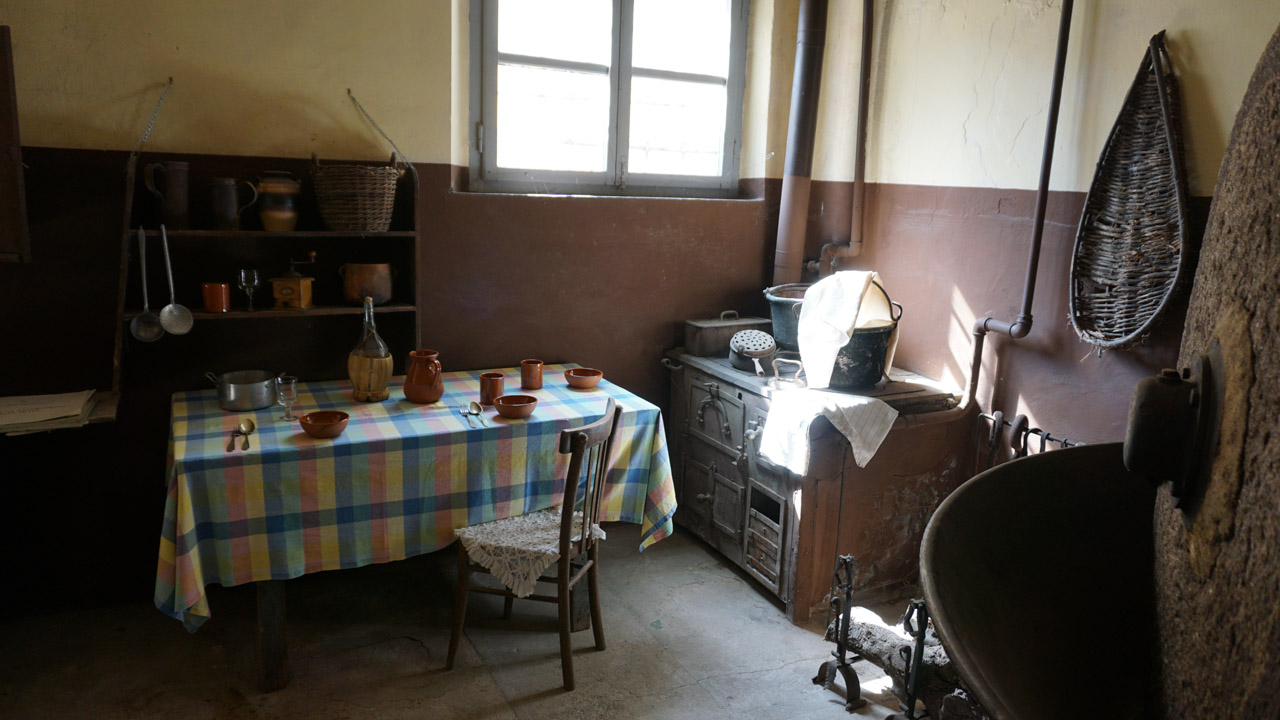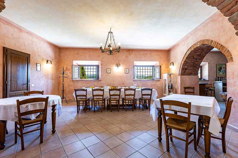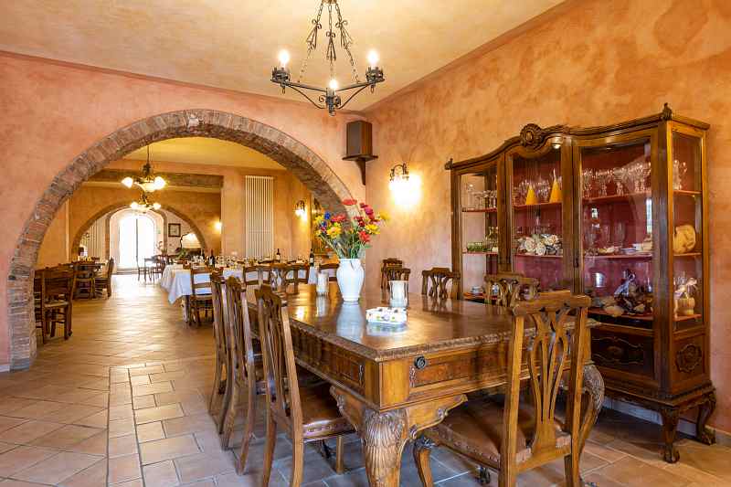 Der geräumige Speisesaal dient als hauseigenes Restaurant, manchmal kommen Gäste von außerhalb dazu. Er wurde, wie das ganze Weingut, liebevoll und möglichst originalgetreu restauriert.
