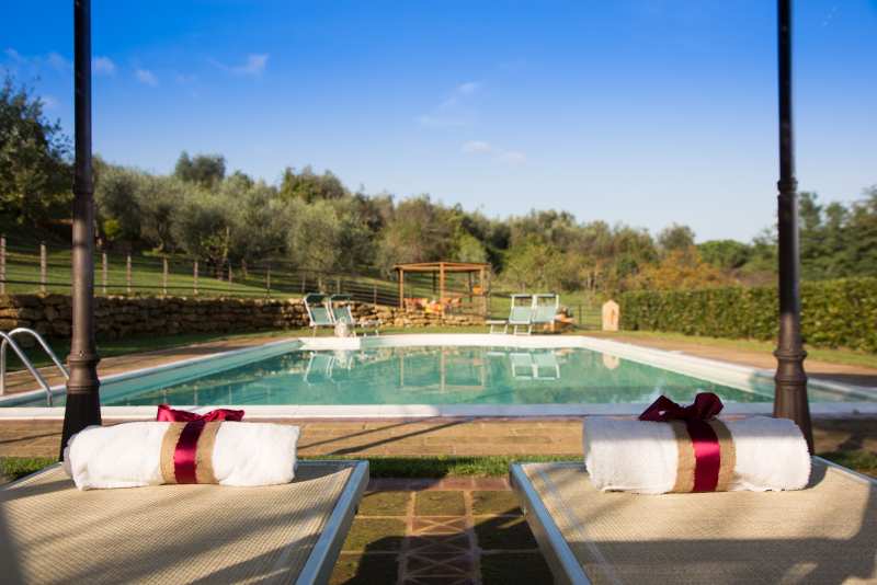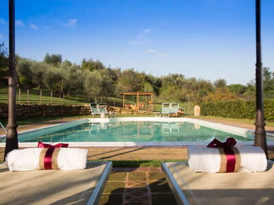 Pool mit Blick in die toskanische Landschaft, 14 x 7 m, nutzbar von Mitte Mai bis Mitte Oktober.