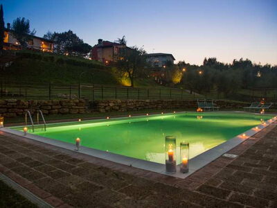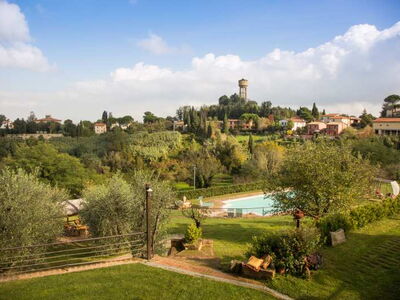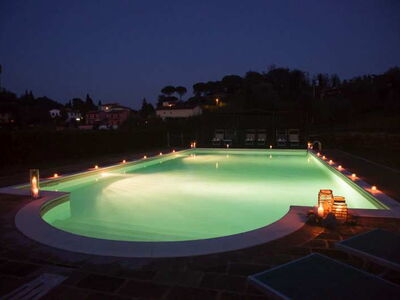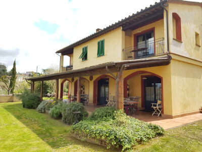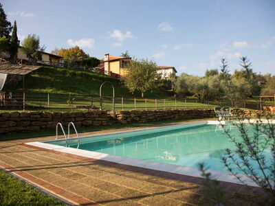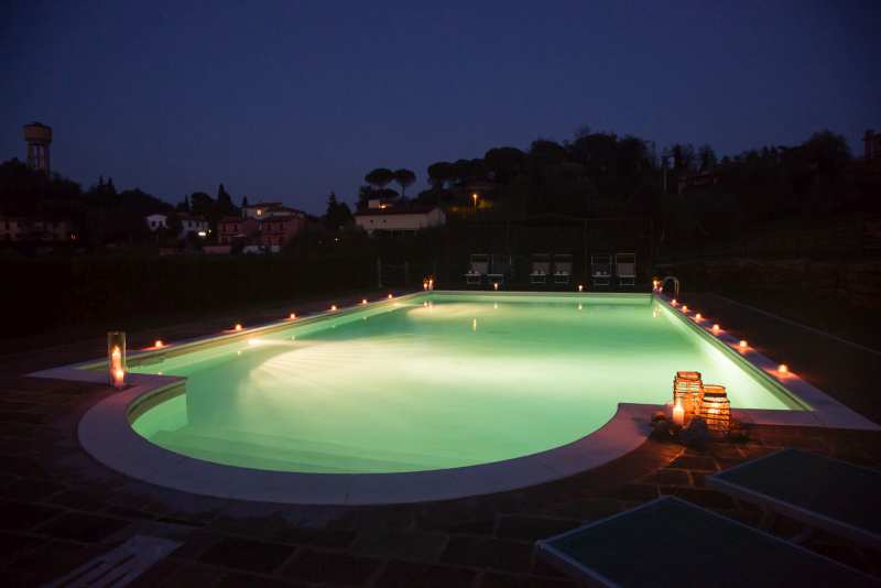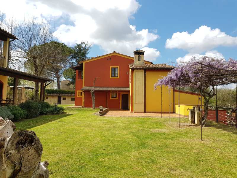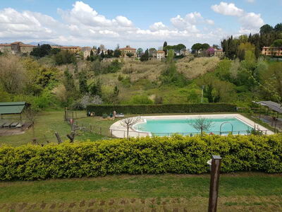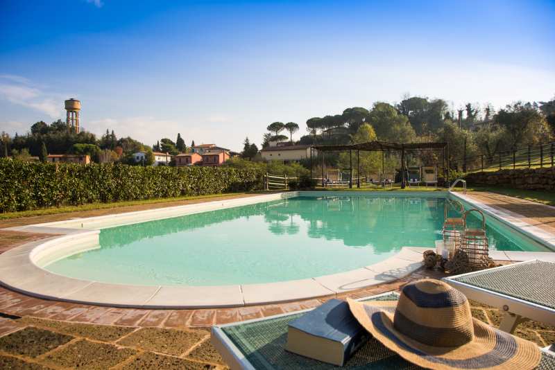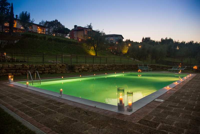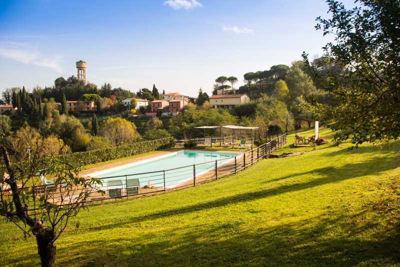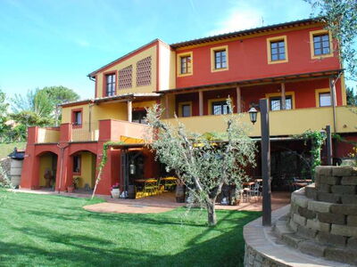 Die zwei nebeneinander liegenden Bauernhäuser sind im typisch toskanischem Stil gehalten. Das rote Landhaus beherbergt vier Ferienwohnungen, das Gelbe fünf. Alle Ferienwohnungen verfügen über eine gute Ausstattung, eine eigene Terrasse und Zugang zum Pool. Sie sind originalgetreu restauriert (eins neu, aber im alten Stil) mit interessanten architektonischen Details. Sie befinden sich am Dorfrand von Lari mitten in einem Obstgarten und Olivenhain. Man hat von dort einen sehr schönen Blick auf Lari mit dem abends romantisch beleuchteten Castello, auf Zypressen und Kirschbäume. Ein wunderbarer Ort für einen komfortablen, entspannten Bauernhaus-Urlaub in herrlichster Natur in der Toskana.