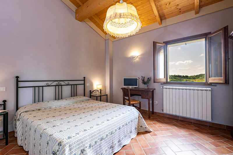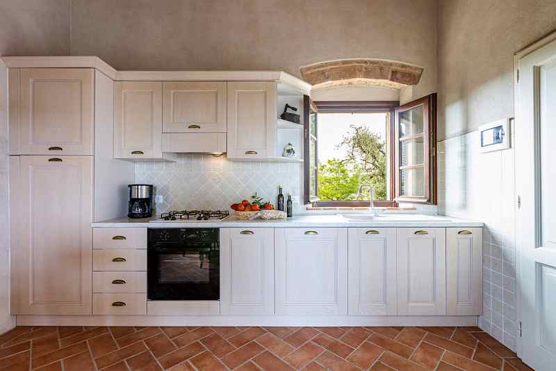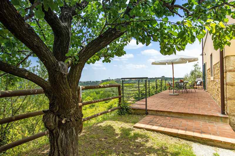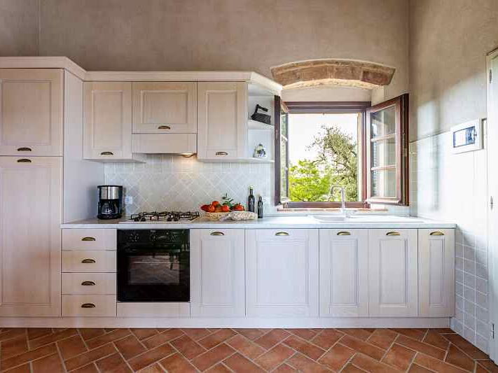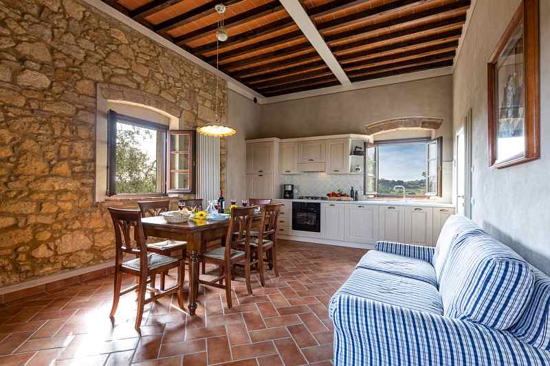Einzelhaus, ca. 100 m², zwei Doppelzimmer mit herrlichem Panoramablick, zwei Bäder, ein Wohnraum/Küche, eigene gemütliche Terrasse mit traumhaften Blick, 4 km von Lari entfernt in einem hübschen Ortsteil gelegen, 35 km bis zum Meer, typisch toskanisch die Holzbalkendecke und der Terrakottafußboden. Zum Haupthaus/ Weingut und zum Pool sind es wenige Schritte, Parkplatz ist am Hau, hübsche Spazierwege ebenso. Wer sich den frisch angesetzten Speck vom leckeren Essen im Restaurant wieder abtrainieren möchte findet direkt vorm Haus eine Fitness-Strecke.