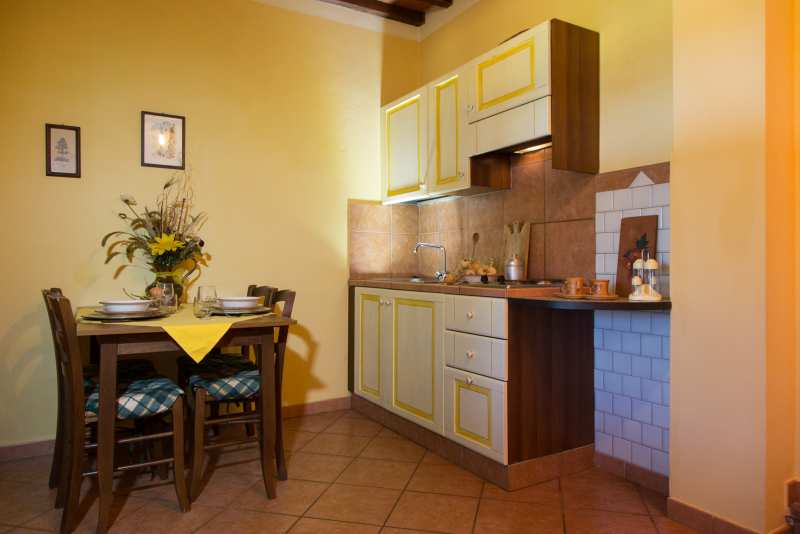 Die Ferienwohnung „Mela“ (deutsch Apfel) liegt im Mittelteil des gelben Landhauses, das zum hübschen Agriturismo mit zwei geschmackvollen Landhäusern am Dorfrand von Lari gehört. Zur Ausstattung gehört eine eigene überdachte Terrasse, die vor zu viel Sonne (kann im Süden passieren) schützt. Der Blick von der Terrasse geht in den Garten, auf Zypressen, Olivenbäume und Kirschbäumen. Ein wunderbarer Ort für einen komfortablen, entspannten Bauernhaus-Urlaub in der Toskana. Im hauseigenen Restaurant wird fantastisch gekocht und vom Pool aus hat man einen Panoramablick in die Landschaft. Das Zentrum von Lari erreicht man bequem zu Fuss. Ein sehr schönes Ambiente, das zum Entspannen einlädt, mit allem Komfort, den man sich wünscht.