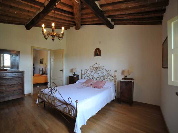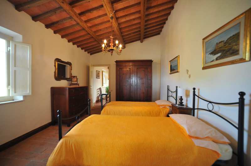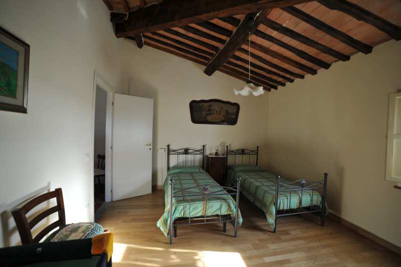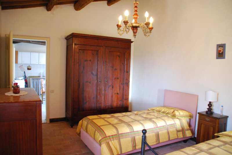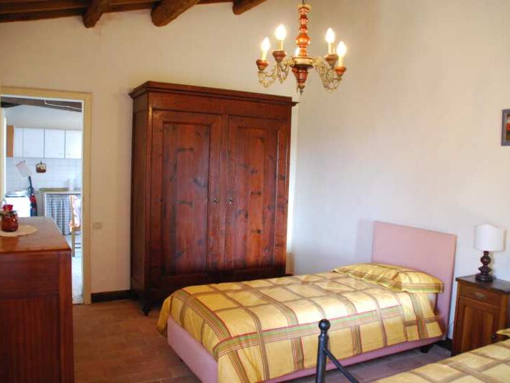 Im ersten Stock gelegen, bietet diese Ferienwohnung einen herrlichen Rundumblick über die sanften Hügel der Toskana. In einem Bereich verfügt sie über zwei Schlafzimmer, Küche und Bad und daneben über Wohnraum und zwei weitere Schlafzimmer, siehe Plan. Alles ist sehr geräumig und gemütlich eingerichtet. Sollte irgendetwas fürs Wohlbefinden fehlen, wird es Bruna behende herbeizaubern. Die Ferienwohnung ist ausgesprochen sauber und gepflegt.