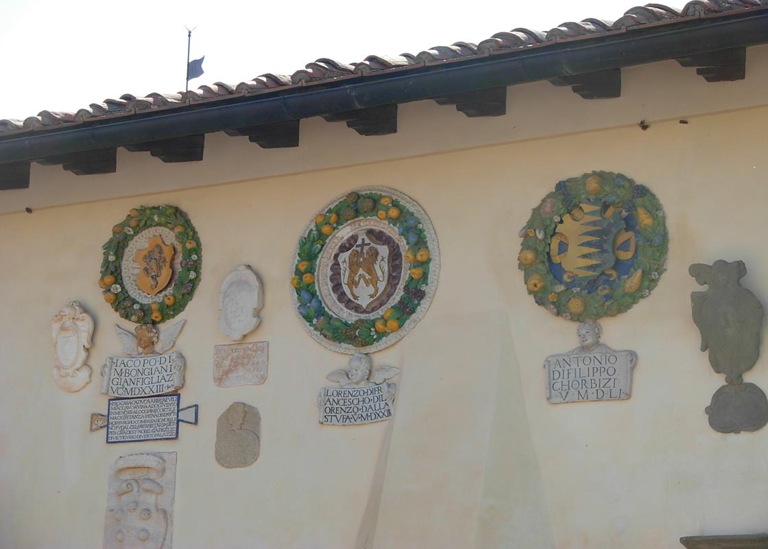 Rundherum sind die 92 Familienwappen, eine etwa 400 Jahre alte Hinterlassenschaft der zahlreichen Landvögte, zu sehen. Direkt über dem Eingang ist auch das Wappen der Medici zu bewundern. Ab und zu beherbergt die Burg in ihren Sälen auch verschiedene Ausstellungen von Malerei bis zur Poesie.