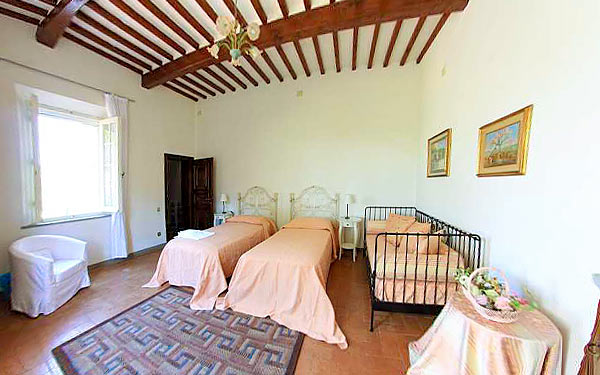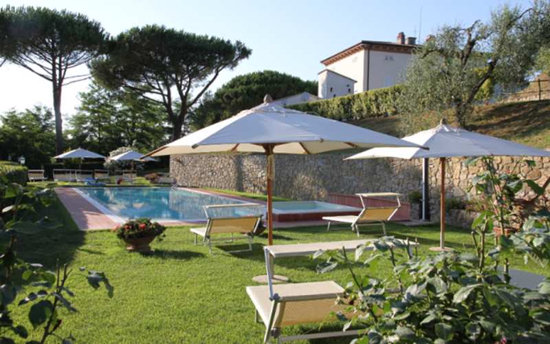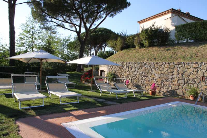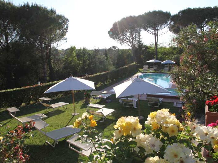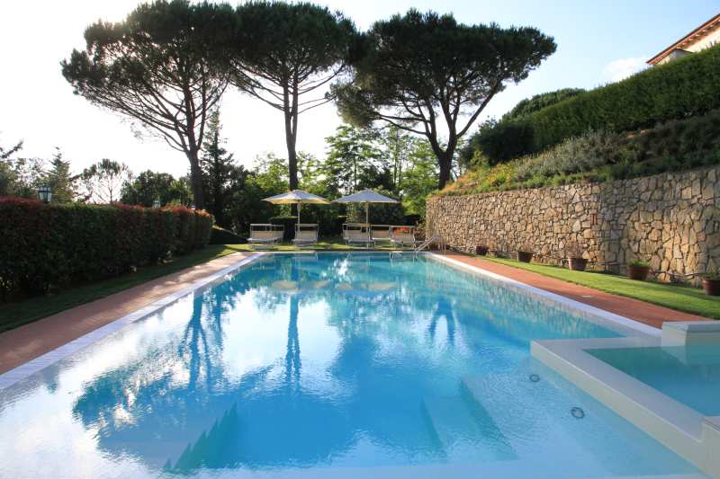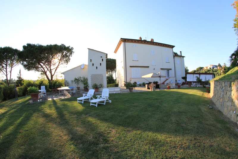 Um das Haus herum, eingebettet im Grün der Pinien und Zypressen, breitet sich ein 8 ha grosser Park aus. Er besteht teils aus Wiesen, teils aus Wald mit Spazierwegen, Oliven- und Obstpflanzungen und Weinbergen. Die günstige Lage der Villa ermöglicht es, die Strände und die Lokale der Versilia, die Küsten von Pisa, Livorno und die Insel Elba aufzusuchen. Das Gelände liegt nur 8 km von der Schnellstraße Florenz-Pisa-Livorno (Fi-Pi-Li), über die man die wichtigsten Kunststädte der Toskana erreichen kann. Pisa (20 km), Florenz (60 km), Lucca (37 km), Siena (70 km), Volterra (35 km), S. Gimignano (30 km)....