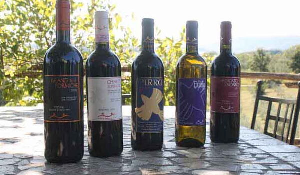 Herzlich willkommen zur Weinprobe auf einem schönen alten Bauernhof in der Nähe von Lari. Der Italiener Alessandro und seine deutsche Frau Kerstin haben sich seit einigen Jahren der Landwirtschaft verschrieben. Sie pflegen sieben verschiedene Rebsorten auf 10 Hektar Land, Jahresproduktion um die 40.000 Flaschen. Außerdem stehen etwa 600 Olivenbäume auf dem Grundstück.